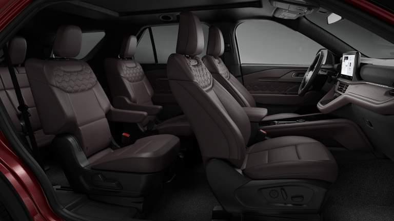 Inside, the Platinum trim is all about elevated comfort and cutting-edge tech. Enjoy heated and ventilated multicontour front seats with Active Motion, heated second-row seats, a heated leather-wrapped steering wheel, and a power-folding third row. The cabin is anchored by a 13.2 touchscreen, 12.3 digital instrument cluster, B&O 14-speaker premium sound system, and Ford Digital Experience with Google Maps and Play Store.