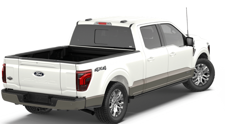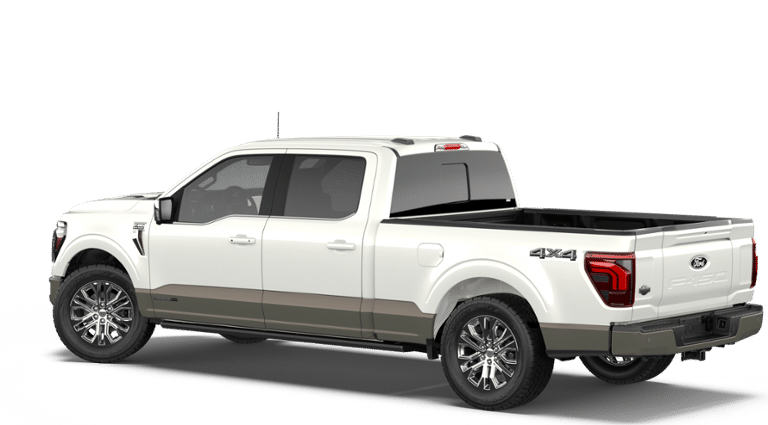 Finished in Star White Metallic Tri-Coat, this King Ranch stands out with signature chrome and bronze accents, 20-inch chrome-like PVD wheels, LED lighting, and the highly functional Pro Access Tailgate. The FX4 Off-Road Package adds skid plates and off-road confidence, while the 3.73 electronic locking rear axle and 7,400-lb GVWR package make this truck ready for serious work.