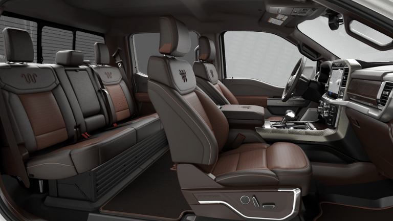 Inside is where the King Ranch earns its reputation. The cabin features Java leather bucket seats, genuine wood accents, heated and ventilated front seats, heated second-row seats, memory settings, and a power-adjustable steering column. This is a work truck that wears a tailored suit and still isnt afraid to get dirty.