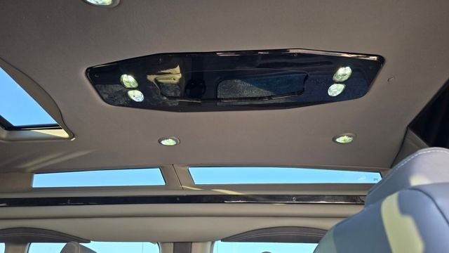 Inside, the Explorer conversion transforms the cabin into a rolling luxury lounge. Premium Ford leather seating with diamond stitching, an extended 9-passenger layout, captains chairs, and a plush rear sofa create a first-class environment for passengers. The Vista Cruiser Sport Roof with full panoramic auto glass and power rear sunroof floods the interior with natural light, while indirect LED lighting and backlit control panels set the mood day or night.