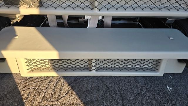 Entertainment and convenience are fully dialed in. A 32-inch 4K Samsung TV with subwoofer, HDMI input, inverter, and 110-volt outlet turns downtime into screen time. USB charging ports, wireless charging pad, auxiliary power outlets, and an onboard air compressor and vacuum keep everyone powered, connected, and comfortable. Dynamat sound deadening and full fiberglass running boards add to the quiet, solid feel.