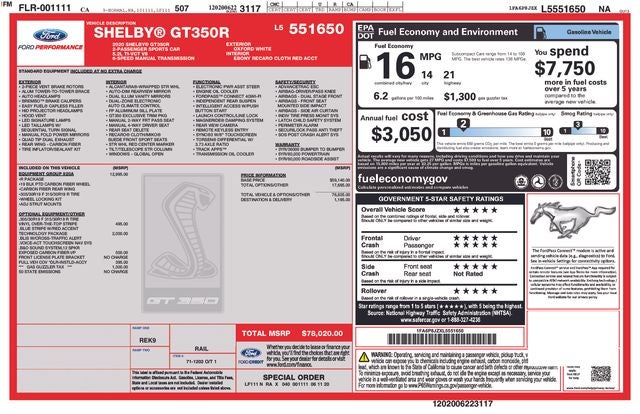 - GT350R Equipment Group 920A
